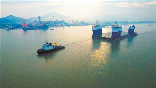 全球最大宽扁浅吃水型半潜驳船“四航永兴”号拖带出港