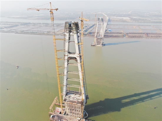 “身高”203.6米!中开高速江门段银洲湖特大桥东岸索塔封顶