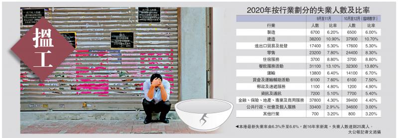 香港:失业率升至6.6% 25万人丢饭碗