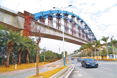 珠机城际二期首座钢管拱桥合龙