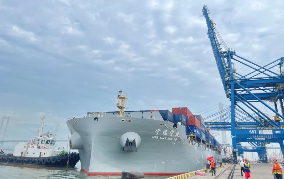 宁波远洋最大吨位集装箱船首泊东莞港