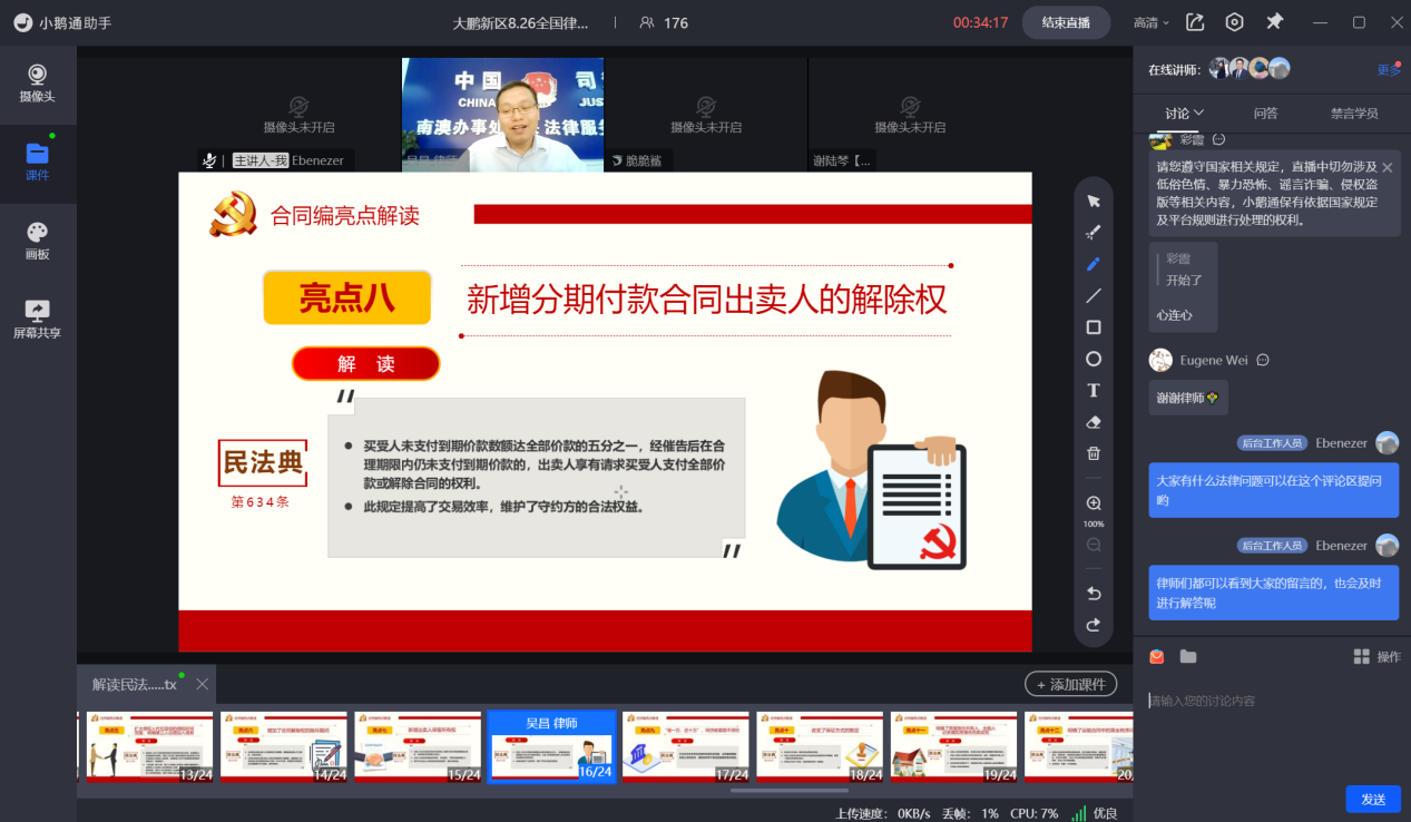 大鹏新区政法办联动律师云端普法,将《民法典》送到居民身边