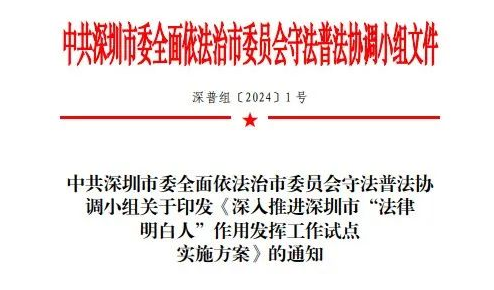 深圳市印发实施方案,深入推进“法律明白人”试点工作