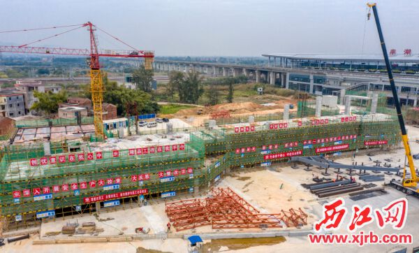 新区庆新区客运站主体结构封顶客运站建设场面热火朝天。通讯员供图