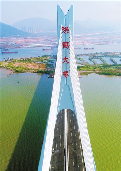 斜拉桥的塔型是桥梁整体景观的灵魂,是桥梁景观设计的重中之重。洪鹤大桥采用经济性较好的混凝土塔,桥塔外形介于花瓶型与钻石型之间,四塔并立于湛蓝水面之上,如同四滴纯净之水汇入江河,隐喻“滴水藏海”的景观主题。“这样的设计理念,亦是一种生态设计,也展示了珠海南方滨海城市的地域特色。”大桥总设计师、中铁大桥勘测设计院集团有限公司副总经理张强说。