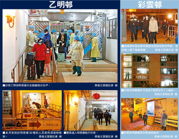 明恩楼32楼的01号至12号、14号及16号室的住客,均被列为密切接触者,要送往检疫中心,本月曾到访该楼的人及居民则须强制检测。