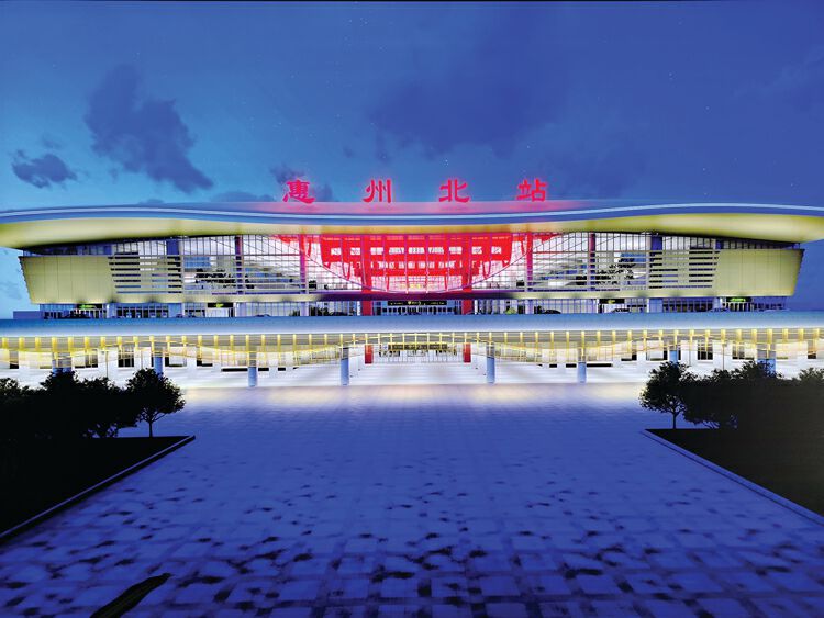 赣深高铁惠州北站综合交通枢纽效果图。戴建摄