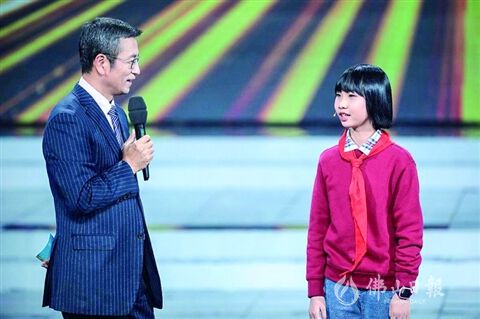颁奖典礼现场,主持人白岩松问黄诗桓,“你的偶像是谁?”黄诗桓毫不犹豫地回答:“钟南山爷爷”,现场立刻响起热烈的掌声。白岩松告诉黄诗桓,他们准备了一份礼物,钟南山院士将邮寄一本亲笔签名书给她,希望她好好学习,未来报效国家。