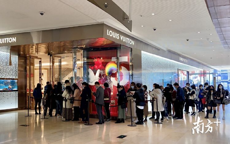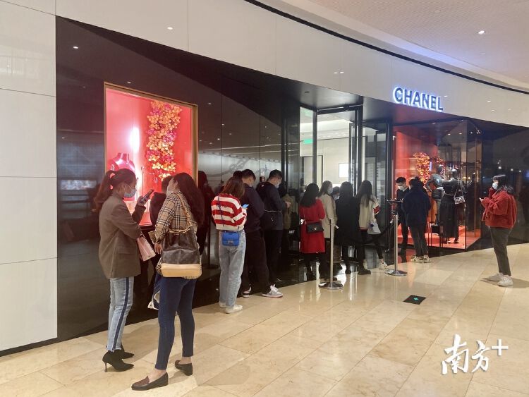 广州市民陆女士是太古汇常客。她说,每到周六日,就看到很多人在几大奢侈品牌店排队,“过去大半年,排队已成为奢侈品店的常态。”