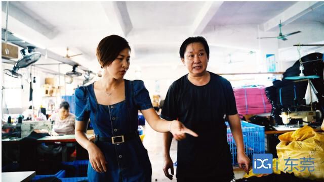 东莞市飞尚运动用品有限公司总经理雷杰玉和她的父亲在工厂里交流