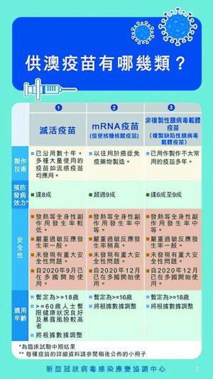她称,疫苗和任何药物一样,接种后可能会出现副作用和不良反应,其中mRNA疫苗有约十万分之一机率出现严重的过敏反应,其他疫苗发生率则和一般疫苗相若(约百万分之一),因此接种前需由医护人员先临床评估。