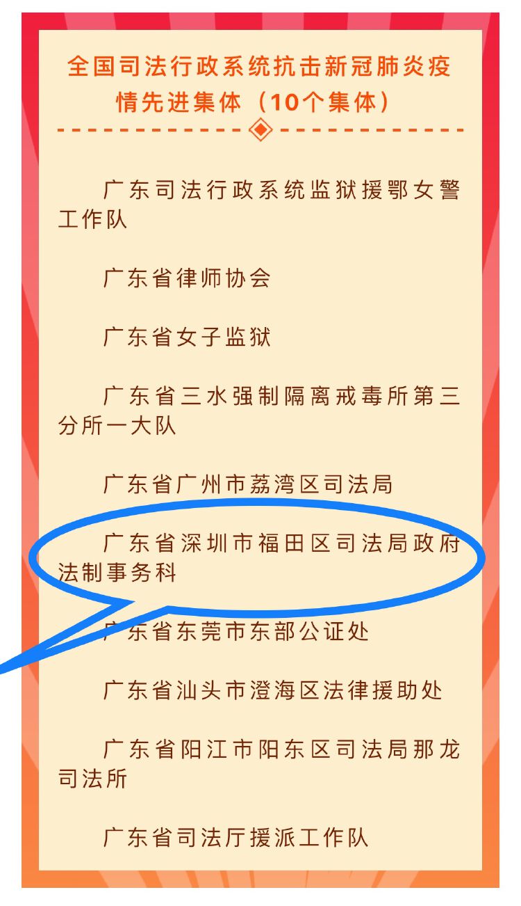 当前,统筹推进常态化疫情防控和经济社会发展的任务仍然艰巨繁重,福田司法局将以荣誉为全新的出发点,继续凝聚团结拼搏、砥砺奋进的力量,恪尽职守、勇担重任,深入开展各项法律服务与法制保障,协力共筑坚强的法律堡垒,为福田区和深圳市的依法防疫保驾护航。