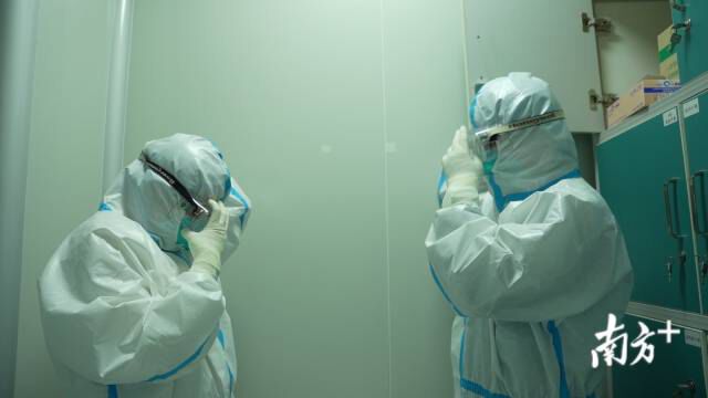 “我今天是大夜班,凌晨一直到上午8点。我们一般会连续工作8小时,今晚我就换一次防护服了,不喝水不上洗手间。”薛云芳告诉记者,很多同事都是这样,工作完脱下防护服才发现里面都湿透了。