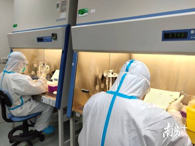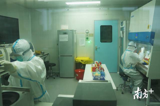 薛云芳和杨淦强在核酸检测实验室。