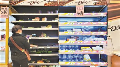 广州百佳永辉超市金田花苑分店里,一位顾客在货架上拿起所剩不多的货品。
