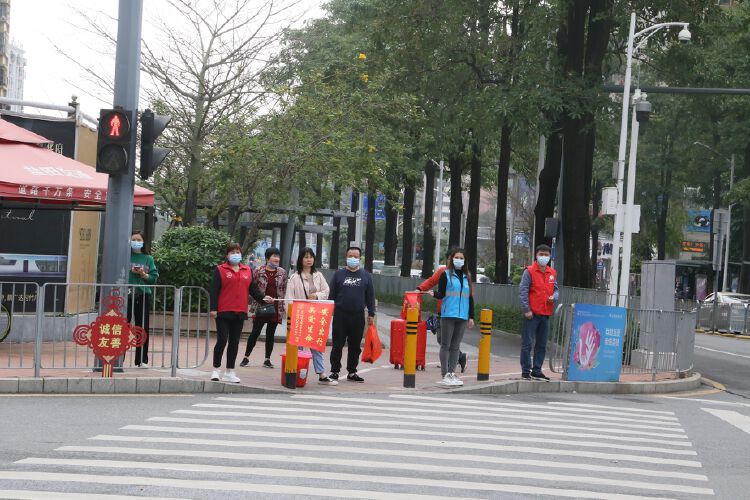 “这位先生,您好!骑电动自行车请正确佩戴安全头盔!”当天早上8:00,盐田街道的党员干部领着志愿者工作人员,身着志愿者服装红马甲、蓝马甲,手持安全文明交通旗,认真协助维持交通秩序,劝阻路人、自行车横穿马路、乱闯红灯等不文明交通行为。