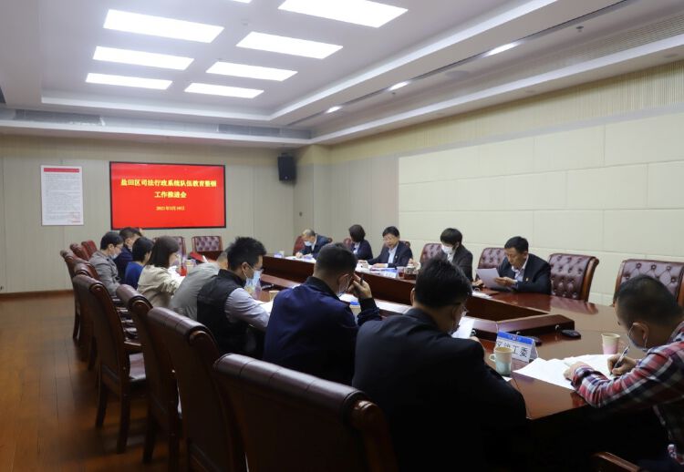 目前,盐田区司法行政系统队伍教育整顿工作领导小组已成立,下设一个办公室和案件线索查办、自查自纠、顽瘴痼疾整治三个工作专班,章善斌任组长,司法局党组其他成员任副组长,全面加强对教育整顿工作的组织领导和统筹推进,强化责任落实和督察问效。章善斌强调,这次队伍教育整顿工作,是党中央对司法行政干部队伍的政治大考、忠诚大考、党性大考、作风大考、能力大考、业绩大考。全区司法行政领导干部要以强烈的责任感和紧迫感,抓紧抓实此次教育整顿,真刀真枪解决队伍中存在的问题,切实推进全区法治建设工作高质量发展,着力打造一支让党和人民信得过、靠得住、能放心的司法行政队伍,为全区加快高质量全面建成宜居宜业宜游的现代化国际化创新型滨海城区提供坚实的法治保障,以崭新的精神面貌迎接党的百年华诞。