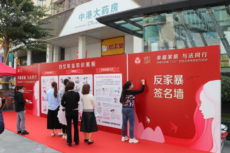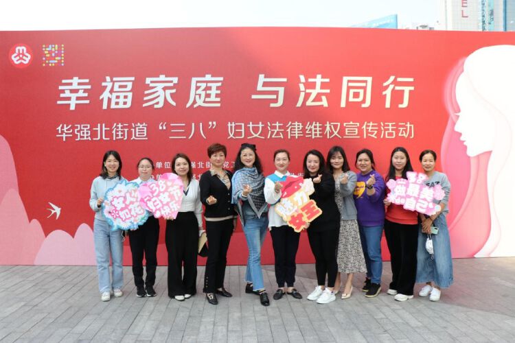 阳光明媚,春风扑面,3月9日下午,华强北街道办事处牵头华强北街道妇联、华强北街道总工会,在华强北群星广场华新地铁站出口广场开展以“幸福家庭,与法同行”为主题的2021年华强北三·八妇女法律维权宣传活动,现场气氛热烈,不断吸引市民前来参与。