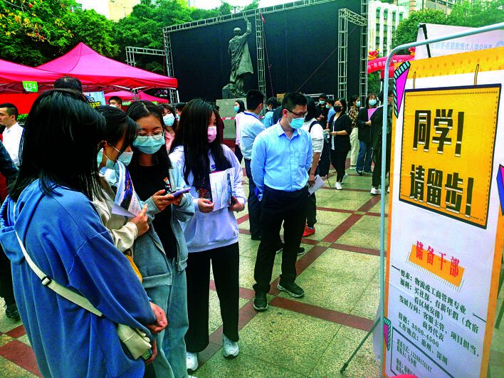 除了应届毕业生,现场还吸引不少正在读大学的学生前来寻找实习单位。来自惠州工程职业学院财务管理专业的曾晓霞就是其中一个,作为一名大二学生,她今年6月实习,“提前参加招聘会,主要是想先熟悉体验一下应聘面试的感觉,可以为自己今后实习或者毕业找工作做准备。”
