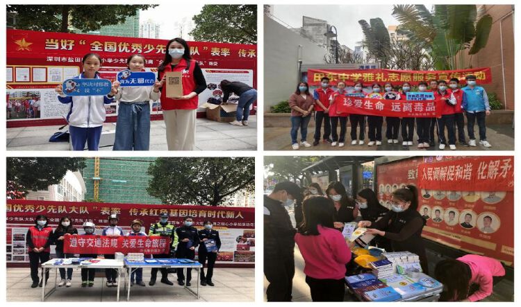 活动现场人头攒动,宣传触角延伸到校园每一个角落。现场通过悬挂宣传横幅、发放宣传手册和小礼品的形式,向家长学生讲解平安建设知识。工作人员向学生展示毒品仿真模型、讲解当下疫情家长和学生防“疫”须防“邪”的重要性,叮嘱每位同学牢记交通安全知识,做好遵守交通安全法律法规的表率。此外,工作人员还邀请青少年学生为“盐田禁毒”“盐田无邪”代言,倡导他们做一名远离毒品邪教,积极向上的新时代好青年。