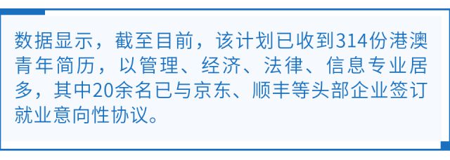 “应聘的港籍青年既有来自暨南大学等内地高校的,也有不少海外高校的,专业包括管理、经济、法律、信息等,青年们比较偏向头部企业,如京东、顺丰等。”前海管理局方面透露,后续随着更多岗位的推出,将为来前海实习、就业的港澳青年提供人才住房、就业资助补贴等政策。