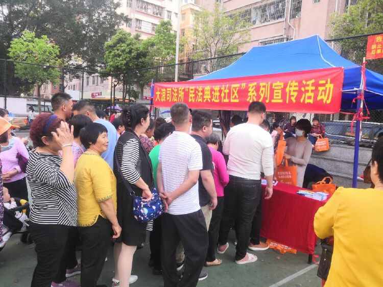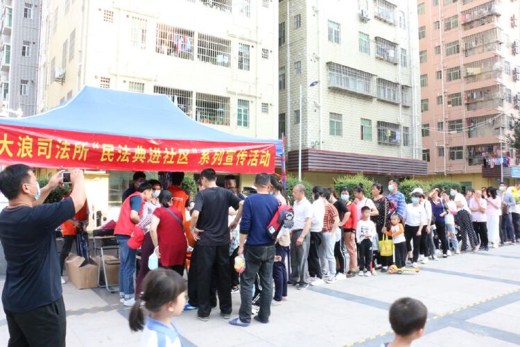 大浪街道司法所联合高峰、陶元、横朗等9个社区工作站先后来到辖区上早、陶吓、横朗社区开展“民法典进社区”宣传活动。活动现场悬挂横幅、设置摊位,开展“以案释法”、现场法律咨询等多项服务内容。