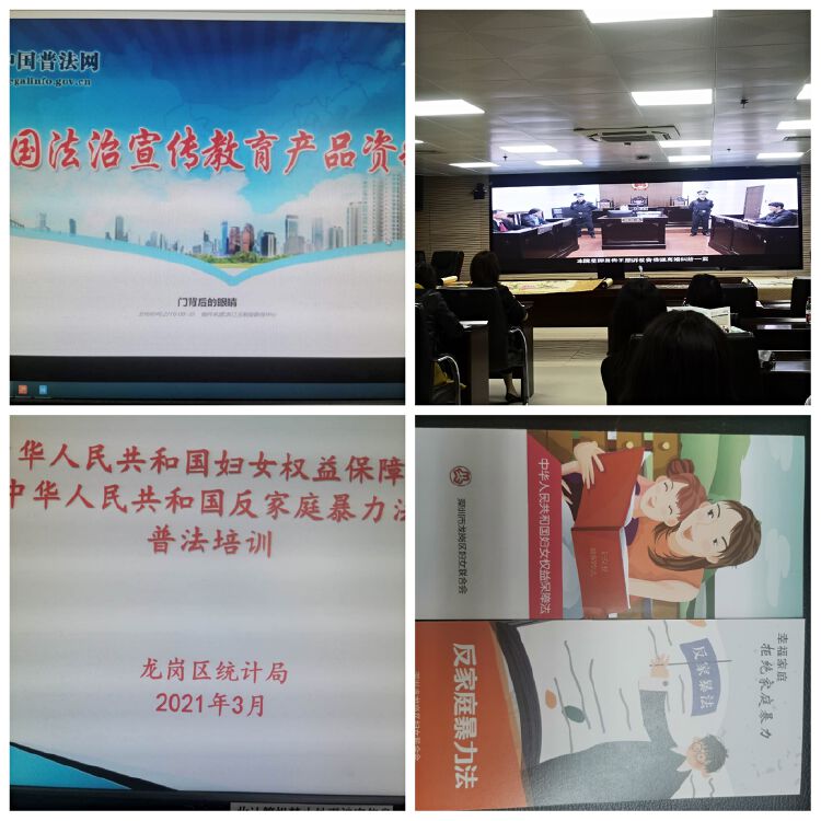普法培训活动现场发放《中华人民共和国反家庭暴力法》《中华人民共和国妇女权益保障法》普法宣传册。活动首先播放全国首个反家庭暴力法的宣传视频《门背后的眼睛》,介绍反家庭暴力法出台的背景、意义、重要性、必要性和针对性;接着宣传《中华人民共和国妇女权益保障法》,号召全体女干部职工自尊、自信、自立、自强,学会用法律维护自身合法权益。