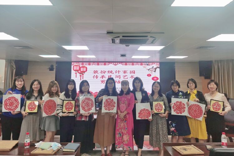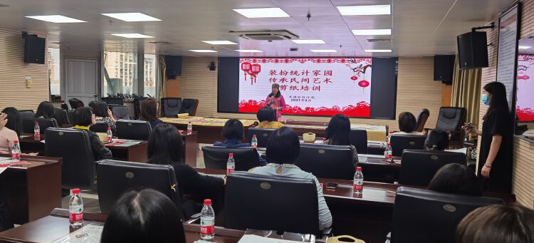 此次剪纸培训活动邀请了联合国世界民俗文化使者、贺氏剪纸传承人、贺知章直系后人贺虹老师授课,贺老师以“剪纸的创新应用”为主题讲课,从剪纸的概念、起源、历史、创新应用等方面进行了深入详细的介绍,让大家了解了剪纸艺术不仅是国家非物质文化遗产,也是人类非物质文化遗产,蕴涵了丰富的历史文化信息,表达了人民群众对社会的认识,对美好生活的向往。接着,贺老师现场示范剪纸要领,在其悉心指导下,全体学员顺利完成了三幅作品。