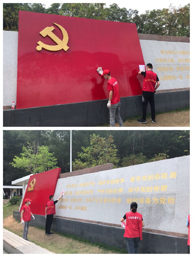 在司法所工作人员带领下,社区矫正对象对党建主题公园绿化带、党史碑、党史展板等进行卫生清扫。活动现场,社区矫正对象互相配合,分工合作,干劲十足,得到了公园游客的一致好评。