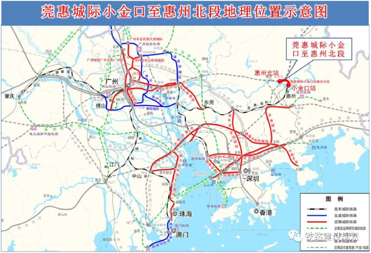 莞惠城际小金口至惠州北段是莞惠城际的延伸线路,自既有莞惠城际小金口站北端引出,线路全长约6.36公里。计划2021年4月开工,2024年4月铺轨,2024年10月竣工。