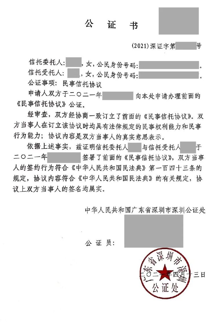 通过律师的帮助指引,李女士于近日来到深圳公证处,在遗嘱公证中为自己的所有遗产设立了一份遗嘱信托。李女士与受托人——自己的至交好友张女士共同签署了一份《民事信托协议》。其中约定,在李女士去世后,张女士将负责管理李女士的遗产,并将管理的遗产及对应的收益,按照《民事信托协议》中李女士提前设定的时间和方式分配给三个受益人:李女士的父亲、母亲和女儿。这样有利于“守住”遗产,按时给李女士的父母和孩子生活费、学费、医疗费。待李女士的女儿30岁时,再将财产全部交给她。