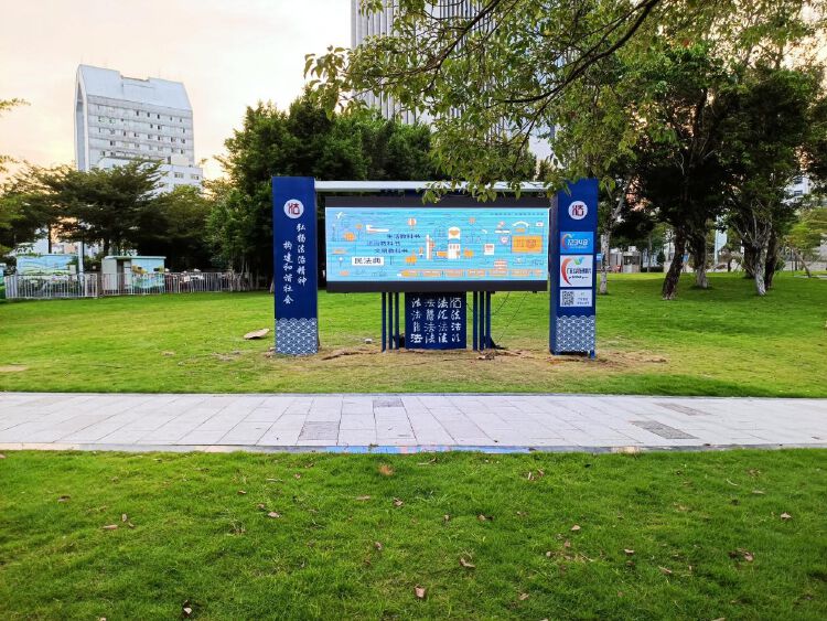 南园街道(滨江社区)法治公园,为深圳市增添了一处法治宣传好阵地。据介绍,该公园在原有的基础设施中,添加注入法治元素,如“法治如山”“法学名人”“法治宣传成果”展览等多元化内容,展示法律文化,突出法治建设历程。该公园成为了辖区居民学习法律知识的好去处。