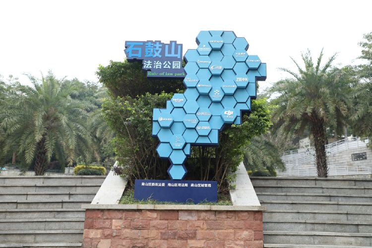 为了充分体现法治文化特色,突出岭南法治文化特色,宣讲南粤法治人物,开展群众性法治文化活动,南山区打造了石鼓山法治公园。