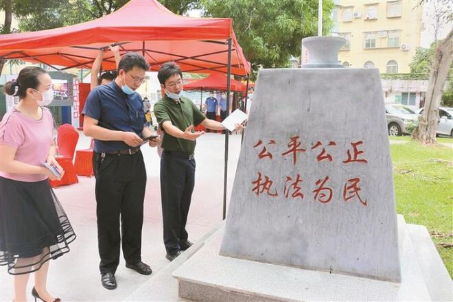作为全省首个生态法治公园,深圳市大鹏新区葵涌生态法治公园以“生态法治”为主题,展示了“生态法制立法的历程”“法治名言”“法治标识”“法治长廊”“法治游戏”等多个法治作品,让法治文化与现有环境相融合,更具有亲和力、吸引力和感悟力。
