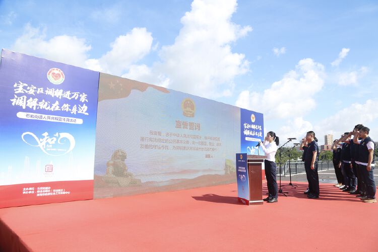 “我宣誓,忠于中华人民共和国宪法,维护宪法权威……”在宣誓环节,由15名街道“三调队伍”调解员代表带领现场500余名干部、市民在宪法面前庄严宣誓。据介绍,调解员领誓,目的是坚持调解工作为人民,把依法维护群众合法权益作为人民调解工作的出发点和落脚点,充分发挥调解维护社会和谐稳定“第一道防线”作用。