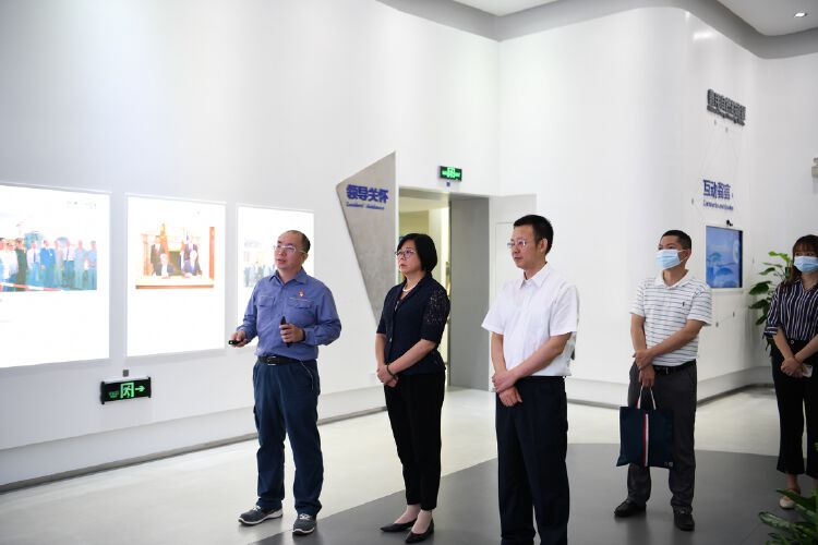 大亚湾核电运营管理有限责任公司党委委员、总经理助理、总法律顾问张龙江向深圳市司法局党委副书记、副局长蒋小文,普法和依法治理处处长刘伟东介绍企业法治宣传和合规建设情况