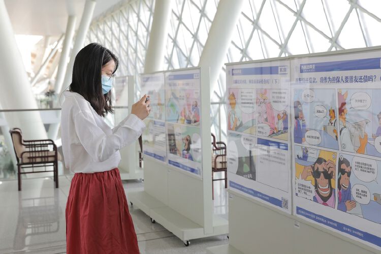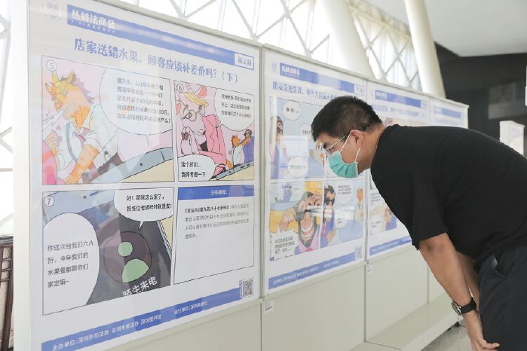 此次展出精心挑选《丛林法商会》专栏十二期普法漫画内容,以轻松幽默、生动活泼的方式将《民法典》知识呈现给广大市民和读者。普法漫画展在深圳图书馆五楼甫一亮相,就吸引了不少读者驻足浏览。展出将持续到7月31日。深圳市普法办方面表示,希望藉由此次展览让更多市民一起亲近《民法典》,学习《民法典》,促进公民法治素养提升,推动《民法典》走到群众身边,走进群众心里。