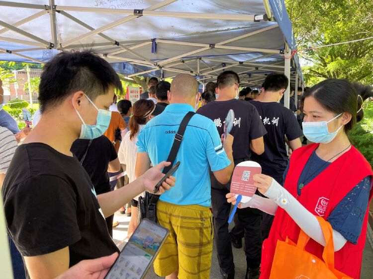 排队做核酸检测的居民正在扫码下载“法治小葵”表情包