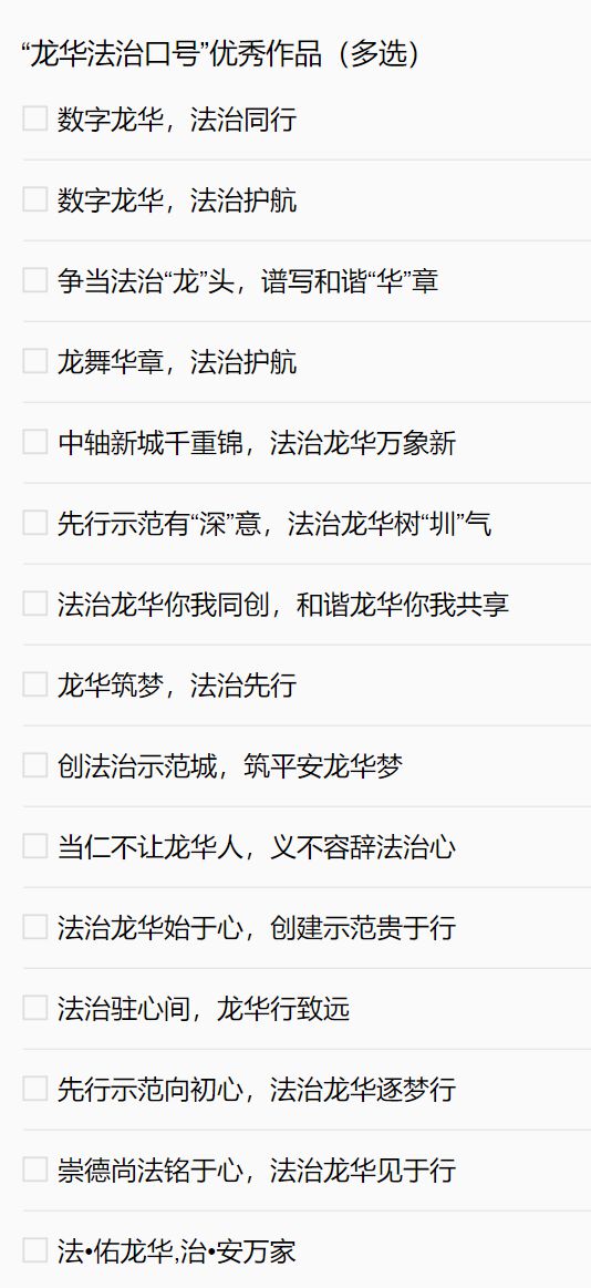 “龙华法治口号”投票活动正在火热进行中,参与投票的网民已逾千人,进入“深圳龙华融媒”微信公众号(投票链接:https://mp.weixin.qq.com/s/nv_nUqbaD-1nbYiawzkQKg)为龙华法治文化选出心中的最佳口号吧!