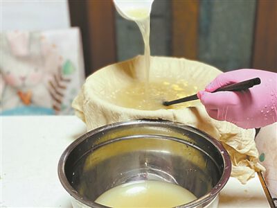 结果,麦芽还没发好,就到了开学的时间,只能等到这周末才开始做。“麦芽发得时间太长,长成了麦苗。”李女士说,周五晚上,皓粼把麦苗榨成了汁,一股青草味儿,他们都以为做不成了,但又觉得糯米已经蒸好,不做的话也吃不完,周六还是试试看,竟然成功了。