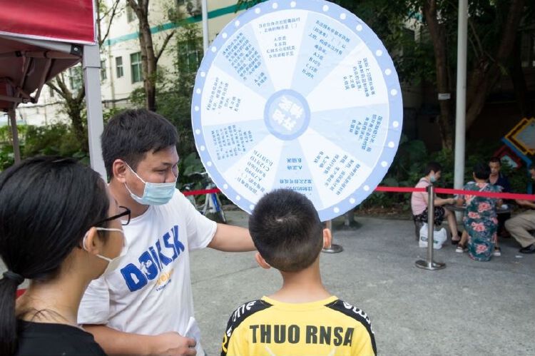 工作人员向居民介绍了毒品的种类、危害和防毒技巧等知识,提醒居民远离毒品、自觉抵制毒品。现场不乏有带着孩子前来参加活动的家长,工作人员特别告知家长务必做好家庭禁毒教育,让孩子从小树立正确的人生观、价值观,提高禁毒、防毒意识,同时向现场的小朋友们讲解毒品防范常识。现场居民积极参加禁毒小游戏,通过VR体验吸毒的眩晕危害,号召广大居民群众积极参与到禁毒斗争中,争当拒毒、防毒的宣传员。
