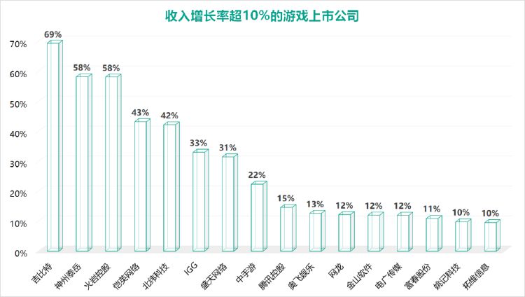 吉比特营收同比大涨69.41%至23.87亿元;神州泰岳的游戏业务收入(壳木软件)同比大涨58%至16.15亿元。