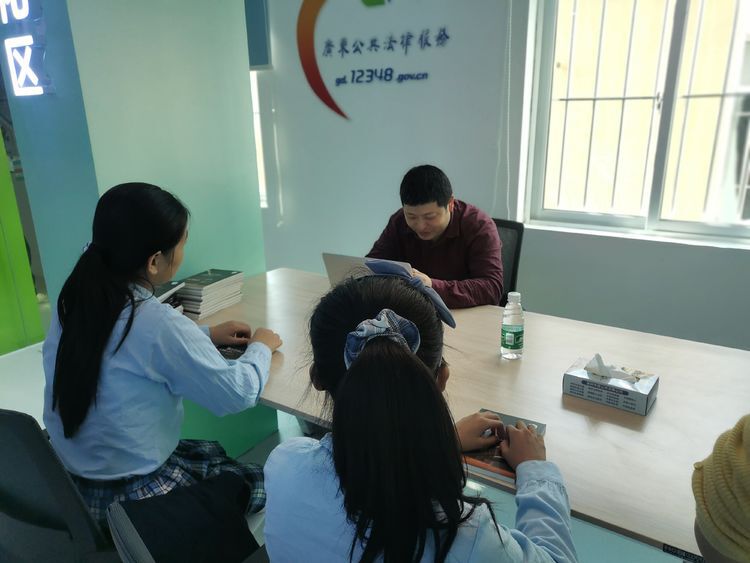 学生在法律咨询室向律师请教关于未成年保护相关问题