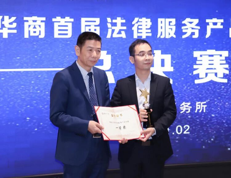 华商律所首席合伙人、主任高树为获一等奖的产品团队代表颁奖