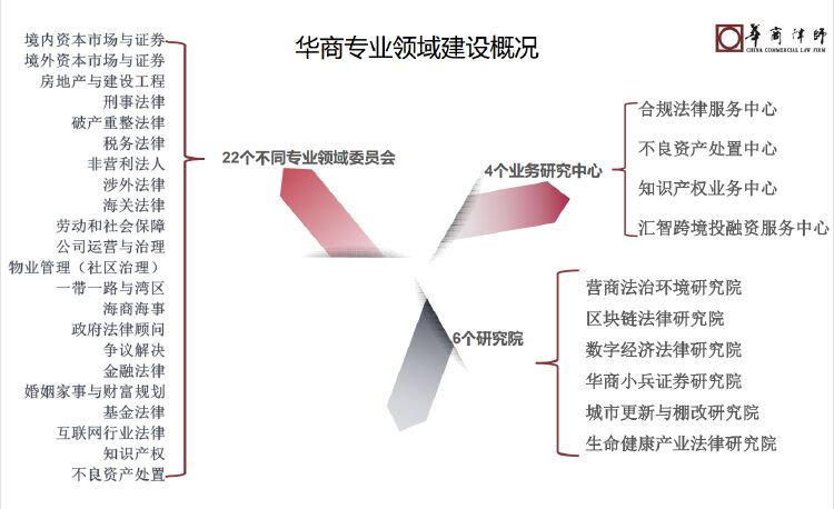 据了解,2019年起,为促进专业建设与新时期华商发展战略进一步融合,华商在现有产学研一体化建设、大力引进专业人才、建设专业团队的基础上逐渐改革,采取诸多创新举措。目前已组建32个专业委员会、研究院,并成立不良资产处置中心、知识产权业务中心,创新试行合伙制律所体制下的专业团队公司化运营;同时还完成了《法律服务产品目录》的编写和发布以及华商文库4本专著的出版工作。