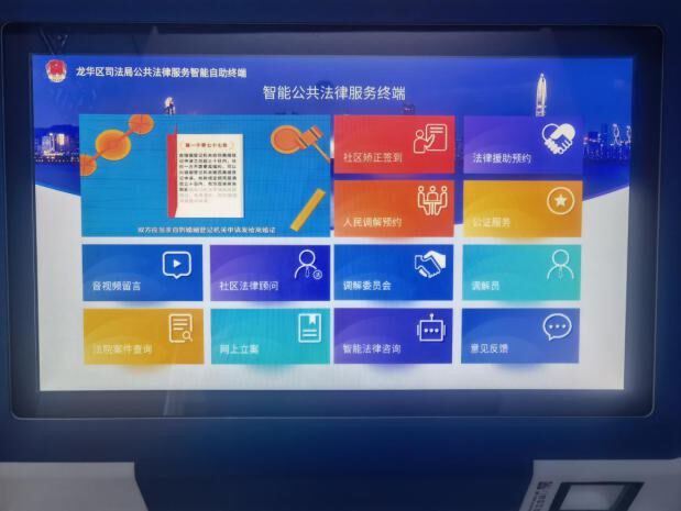 法律ATM机以需求为导向提供精准法律服务,共设有11大便民服务模块,包括智能法律咨询解答、音视频留言、普法宣传、人民调解预约、法律援助预约、社区矫正签到、社区法律顾问查询、公证服务、调委会/调解员查询、法院案件查询、网上立案等。通过“互联网+法律服务”的形式,将多项法律服务整合到数字终端,实现法律服务的人工智能化,切实为群众解决法律服务需求提供便利。