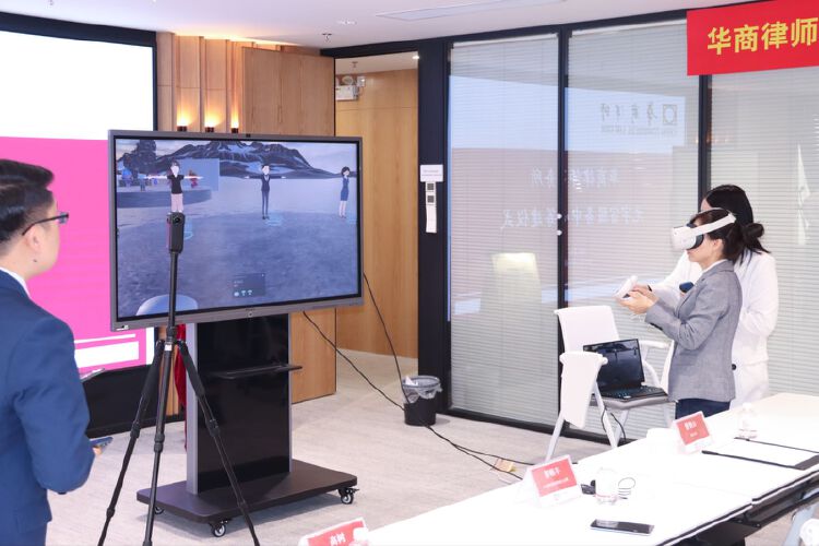 仪式现场,大西洲科技有限公司演示了“元宇宙”(虚拟世界)的场景、技术平台等及“华商律师事务所元宇宙服务中心(虚拟世界)”1.0版本的技术方案。