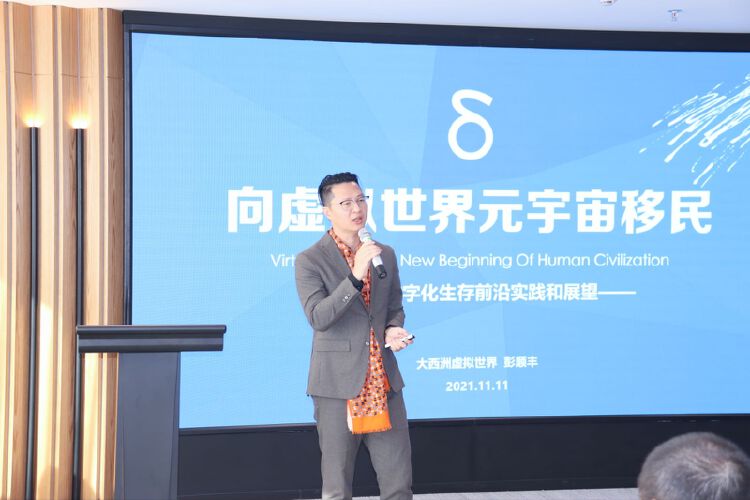 大西洲科技集团总裁彭顺丰以《向虚拟世界移民》为题进行演讲,将与会者带入虚拟世界的场景体验中。