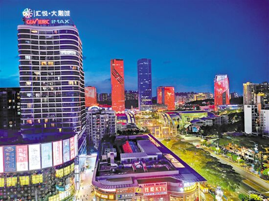 大融城及江门万达广场一带,商业繁荣,消费旺盛。郭永乐 摄