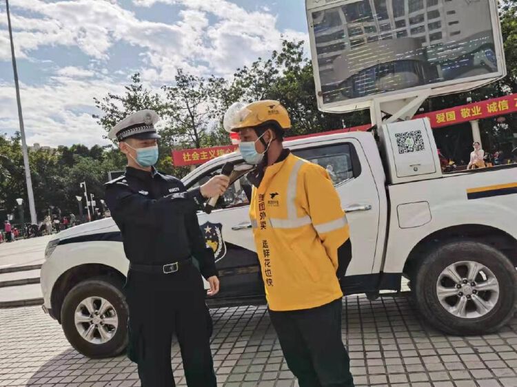 培训活动现场组织配送员观看了交通安全教育视频,交警讲解交通知识和注意事项,并进行了有奖问答。活动中,交警要求外卖员要落实好外卖车辆“亮尾”工作,提醒外卖员在送餐时严格遵守交通法律法规,佩戴好头盔,严禁出现闯红灯、走机动车道、逆行等行为。